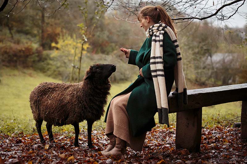Longue écharpe bicolore douce naturelle. Laine wallonne peignée de Mergelland blanche et anthracite. Laine vierge douce mulesing-free couleur blanc naturel. Lin européen certifié Oeko-Tex Standard 100 et Masters of linen. Sans teinture. Motif à chevrons zig zag avec des grandes rayures anthracites. Tricotée artisanalement en Belgique par une styliste belge. Adaptée pour les grande tailles.